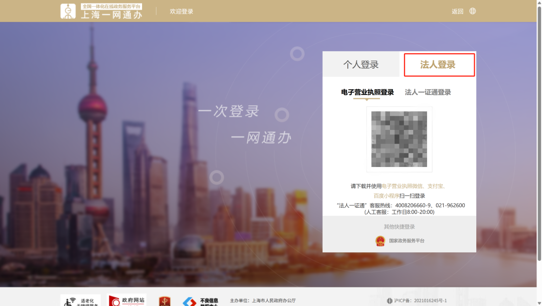 一网通办面点击登录